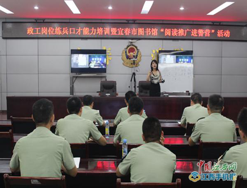 中國(guó)江西網(wǎng)訊 胡勇、記者李曉陽(yáng)報(bào)道:為貫徹總隊(duì)《關(guān)于開(kāi)展全省公安消防部隊(duì)政工崗位實(shí)戰(zhàn)化練兵的通知》的相關(guān)要求,積極備戰(zhàn)總隊(duì)政工崗位練兵競(jìng)賽,近日,宜春市消防支隊(duì)聯(lián)合宜春市圖書(shū)館舉辦政工崗位練兵口才能力培訓(xùn)暨“閱讀推廣進(jìn)警營(yíng)”活動(dòng),支隊(duì)全體政工干部以及對(duì)語(yǔ)言口頭表達(dá)富有興趣的官兵、合同制消防員參加了培訓(xùn)。