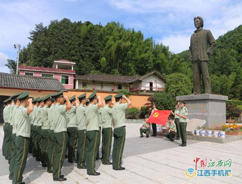 活動中,全體官兵來到銅鼓縣排埠鎮(zhèn)毛澤東同志化險福地,通過親身感受和近距離接觸,重溫了那一段崢嶸歲月里的紅色記憶。在毛澤東同志銅像前,支隊政治協(xié)理員鄒衛(wèi)軍帶領(lǐng)大家面對鮮紅的黨旗,莊嚴地重溫了入黨誓詞。隨后,全體官兵來到銅鼓縣秋收起義紀念館,通過講解員的講述,大家詳細了解了秋收起義的歷史背景和經(jīng)過,特別是革命先烈們英勇頑強的戰(zhàn)斗精神和老區(qū)群眾全力支持人民軍隊的感人事跡,一次又一次的打動了在場的每一名官兵。