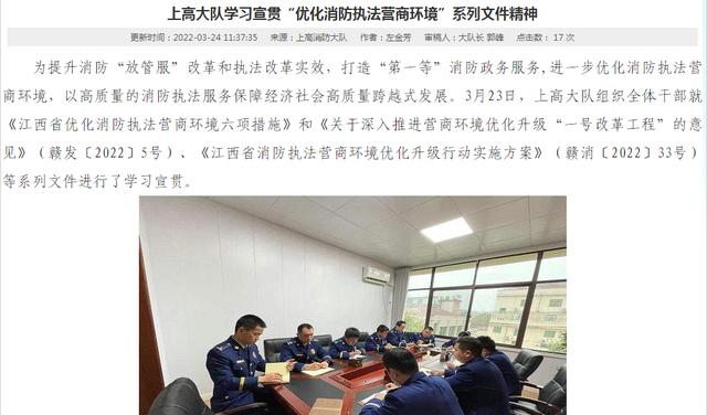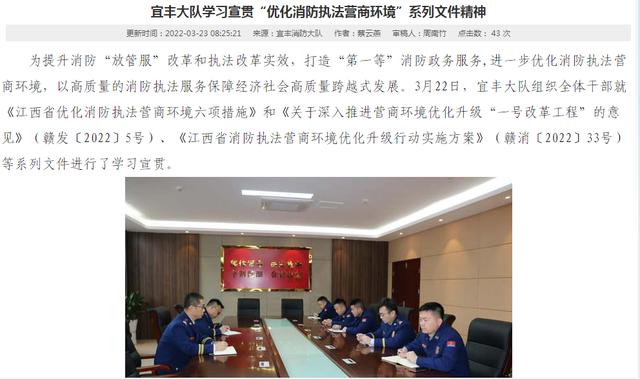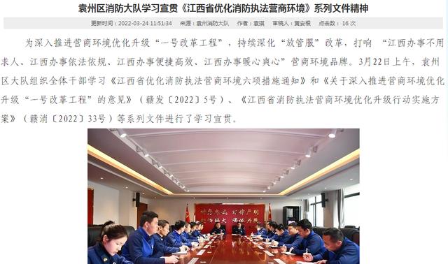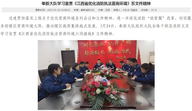 會議結(jié)束后,各地先后組織學習宣貫《江西省優(yōu)化消防執(zhí)法營商環(huán)境六項措施》系列文件精神。