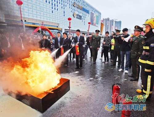 中國江西網(wǎng)訊 徐濤、記者周怡伶報道:11月8日上午,宜春市政府在宜春萬達廣場隆重舉行“119”消防宣傳日啟動儀式。宜春市副市長、公安局局長萬秀奇,宜春市公安局副局長楊振耀,省消防總隊防火部部長梁智勇等領導出席啟動儀式。市消防安全委員會成員單位負責人、消防安全重點單位負責人、萬達廣場員工、各街道、社區(qū)、企事業(yè)單位人員、志愿者、消防官兵、專職消防隊和媒體記者共計800余人參加了啟動儀式。啟動儀式由宜春市政府副秘書長黃省東主持。